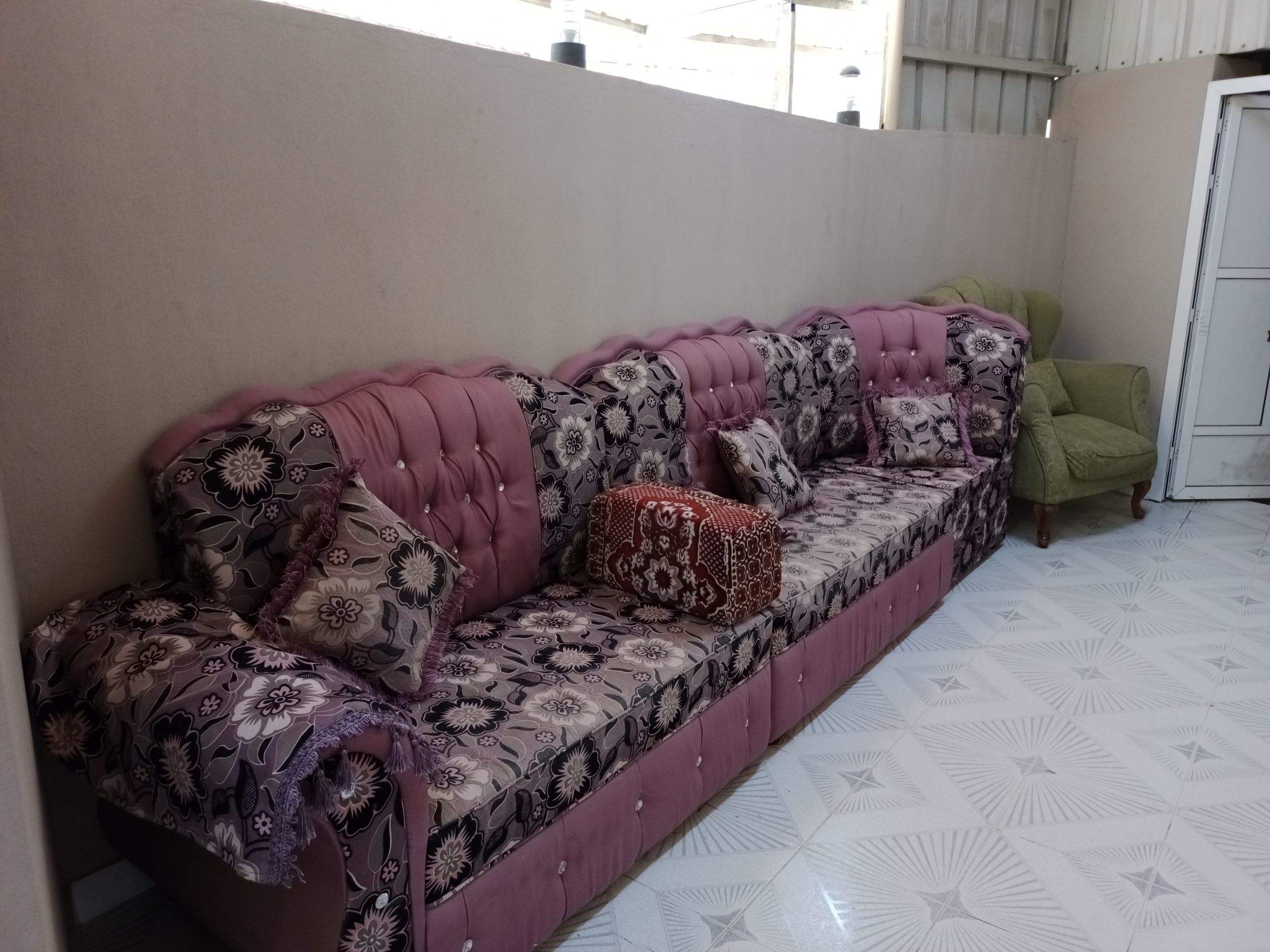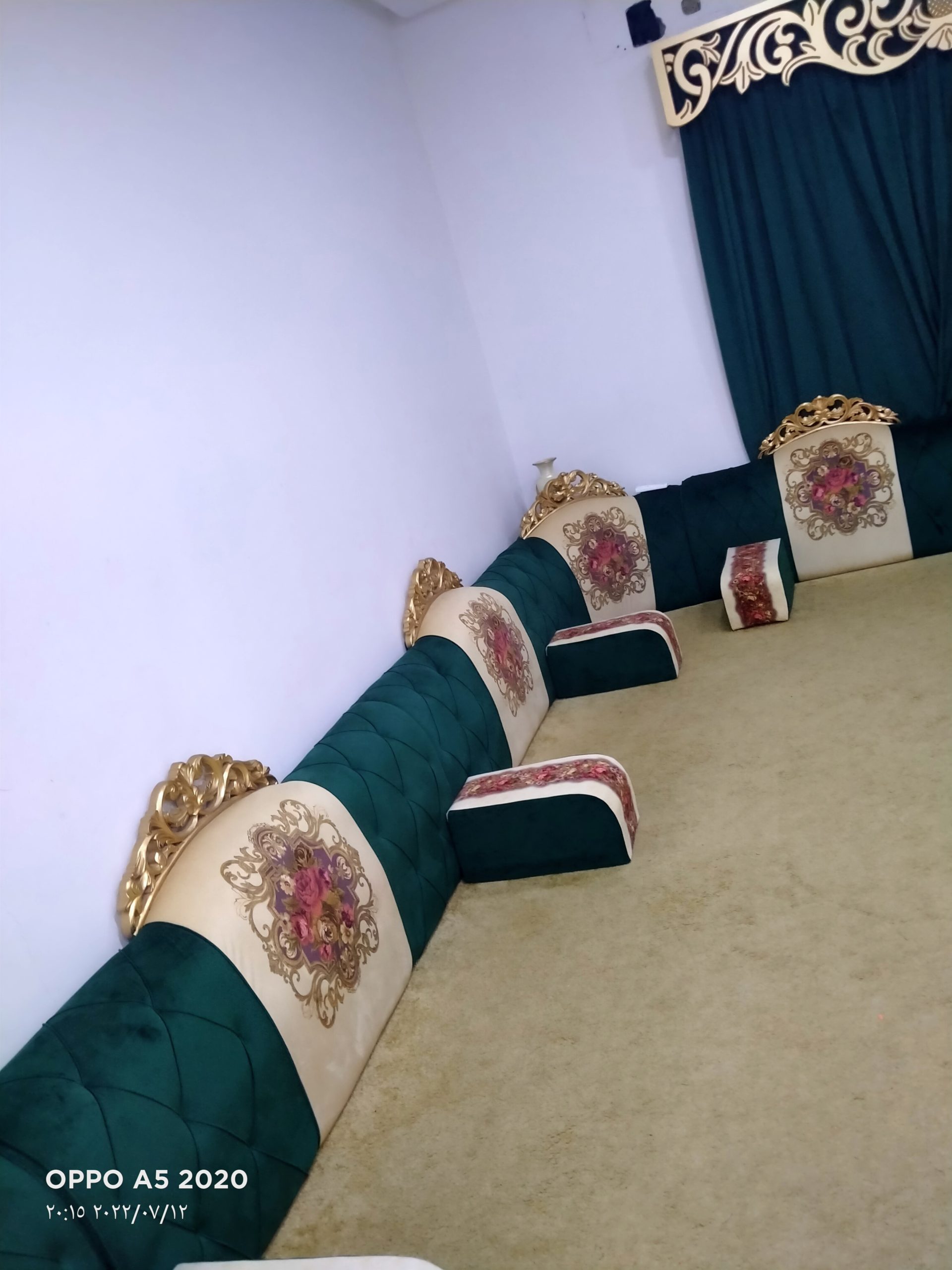 جلسة أرضية للبيع19متر شبه جديد استعمال أقل من شهرين مع السجاده والستارة و3طاولات التواصل للجادين 33985052
