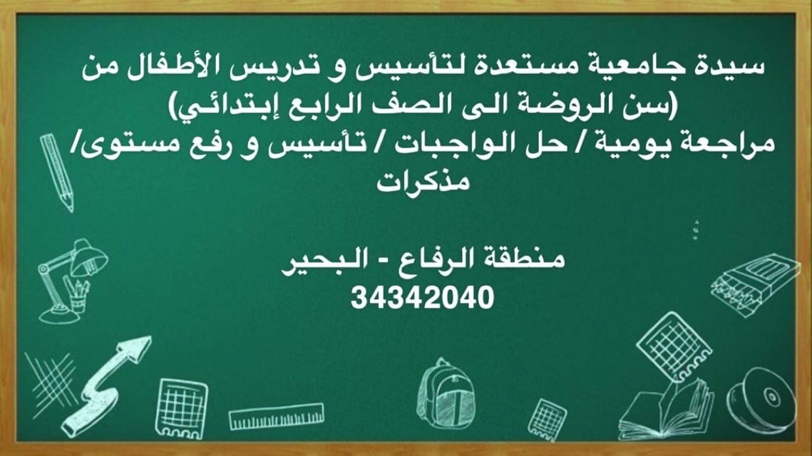 سيدة جامعية مستعدة لتأسيس و تدريس الأطفال من ( سن الروضة الى الصف الرابع إبتدائي)
