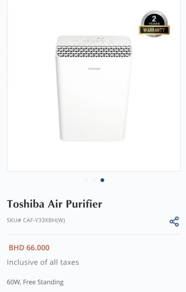 للبيع منقي هواء جديد Toshiba Air Purifier Brand New. موديل …